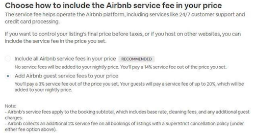 Airbnb is also piloting a program whereby hosts can now choose to absorb the guest service fee (anything from 6-20%) as a set 14% service fee (plus an additional 2% for super strict cancellation policies).
